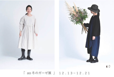 つむぐ年内最後の企画展は「ao」さんの冬のガーゼ服をご紹介いたします。 冬のお出かけが楽しくなるワンピースやボトムス。 重ねて楽しめる定番のインナー類。 ふっくらとした肌触りが嬉しくなるリラックスウェア等。 ふんわりと包み込む暖かさをお届けします。 この機会にぜひお越し下さい。